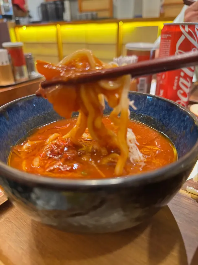 蝦味很濃郁,另上濃厚番茄🍅湯底,灑上櫻花蝦,彈牙麵條超正;加上煎過的厚切豚肉,愛死了🤭