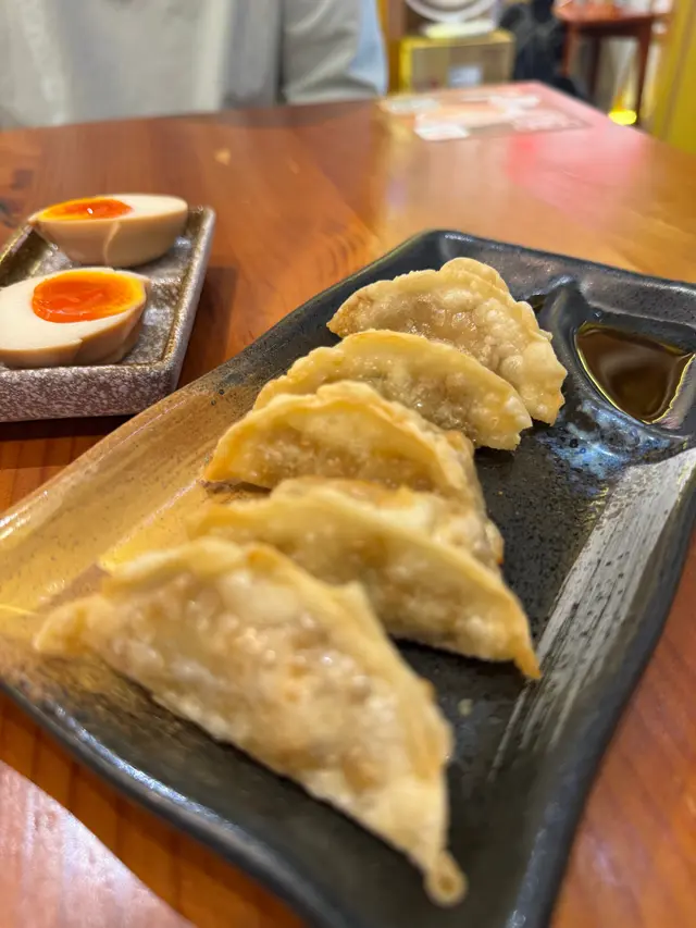 日式炸餃子外脆內嫩,肉汁豐富;溏心蛋滑溜濃郁,提升整碗拉麵層次。