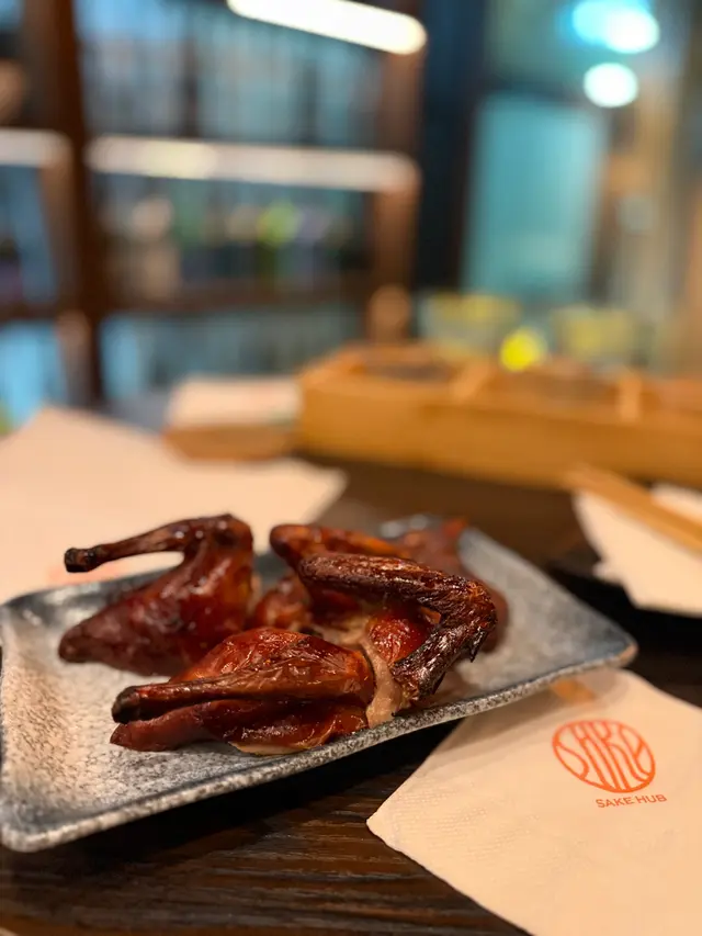 另外小食貴精不貴多,試左三款辣雞串(冬陰功/土匪/麻辣),同secret menu 焗乳鴿,真係好有肉汁亦好適合送酒,能夠喺sake bar 食到乳鴿真係驚喜!