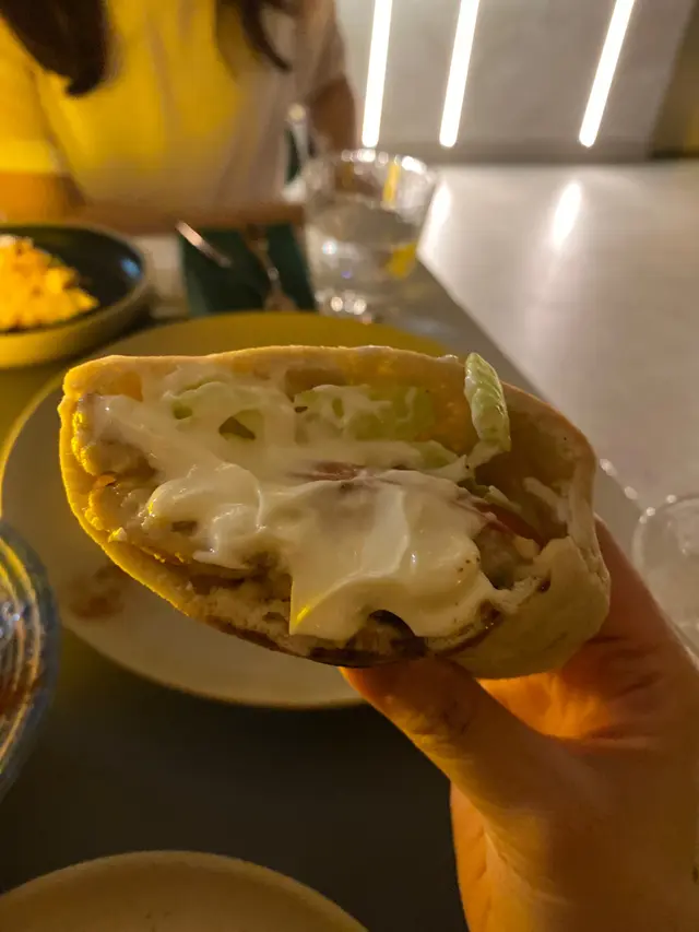 招牌希臘沙律: 清新一點選了一個沙律加烤雞,沒想到是一個比高包內有烤雞。包剛烤好,加入用香料醃製的烤雞及新鮮蔬菜,口味很有地中海風情,尤其喜愛那白醬,帶點乳酪感覺,很好吃。下方亦有新鮮的火箭菜及蕃茄仔等,作為餐前小食挺合適。