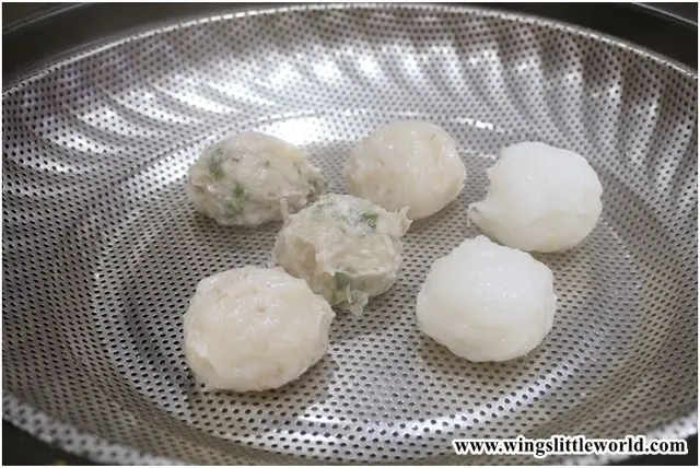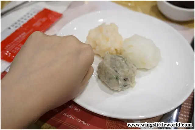 每粒手打丸都像我三分之一個拳頭般大,這是比想像中還要大得多啦。先試試墨魚丸,每一口都有豐富的墨丸粒包裹在墨魚丸裡面,味道亦比想像中還要鹹香;蝦丸的鮮蝦味遠超過一般手打丸的味道,相當鮮甜;鯪魚丸中有蔥跟切粒的馬蒂,本來很爽很香的,但略嫌蔥花跟馬蒂的分佈不平均,以致口感跟味道均略遜一籌。