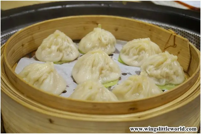 由於有店員的服待,要蒸多久呢,我都不知道。蒸完之後見到熱辣辣新鮮出爐的小籠包,心中有種莫名的興奮。夾起時還見到有湯在小籠包內晃著,入口時就知道這個小籠包是真正的皮薄饀靚,小籠包中的湯熱呼呼且惹味,餡子的肉味很濃郁,餡料中的豬肉肥瘦平均,令人喜愛~