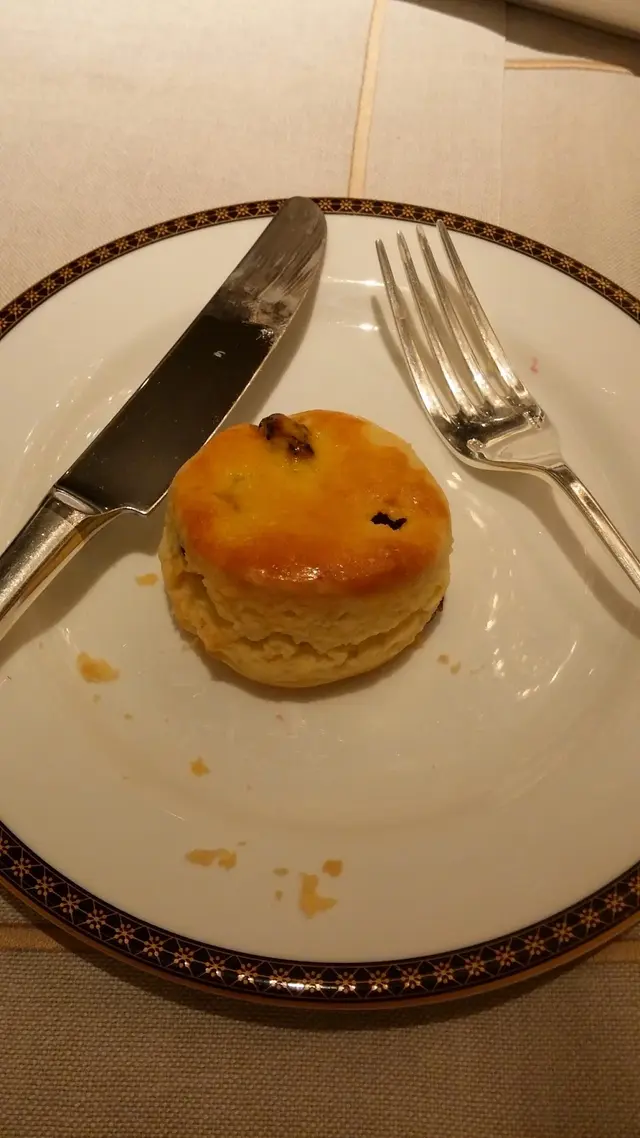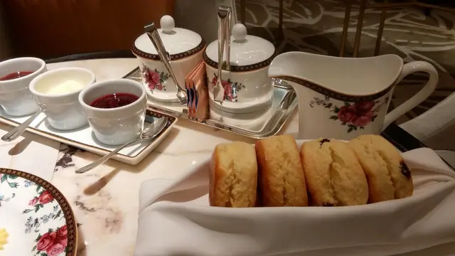 因為那天曉晴是不計算quota進食,所以那些伴醬也吃光光!Clotted Cream不夠滑,也不夠冷,不暖不冷的不太好,奶味也不重,只是讓鬆餅易入口一點。但對曉晴來說就是多餘的東西。重點在於那兩個醬,一個是士多啤梨果醬,另一個竟是玫瑰果醬!!!!怕甜的曉晴不喜歡那 士多啤梨果醬,味道有點死甜,好姊妹很是喜歡呢。曉晴大推的還是這個自家製玫瑰果醬,清香不甜膩,淡淡的玫瑰香填滿整個鬆餅,只有輕量的甜,讓曉晴吃得非常舒服,結果吃下三個鬆餅之後,曉晴還用匙羹把整罐玫瑰醬吃光光!雖然未吃過文華東方的神級玫瑰醬,但這裡的玫瑰醬真的很好吃很好吃!配上濃濃牛油香的鬆餅實在是「互即互補」的美好一對!唯一要彈的就是鬆餅真的太小了,吃了三個都不夠喉。