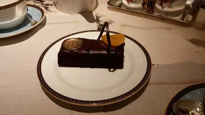 全部都很美,而且是Tea Set的大個版,每件只是$4x,酒店來說實在實惠,加上味道又好,質素又高,這個價錢可算是超值。本來曉晴想選一件剛剛吃過的吉士撻,但好姊妹則說既然已經吃過,不如買一件沒吃過的試試,於是選了朱古力蛋糕。