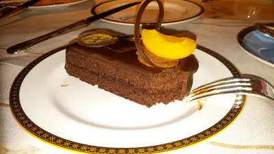 朱古力蛋糕很漂亮,大大件,有朱古力的裝飾和一片香桃,真好看。甜品除了好吃,還是要讓人賞心悅目才行嘛~~想不到朗廷酒店的餐具好看之外,甜品也一樣好看。