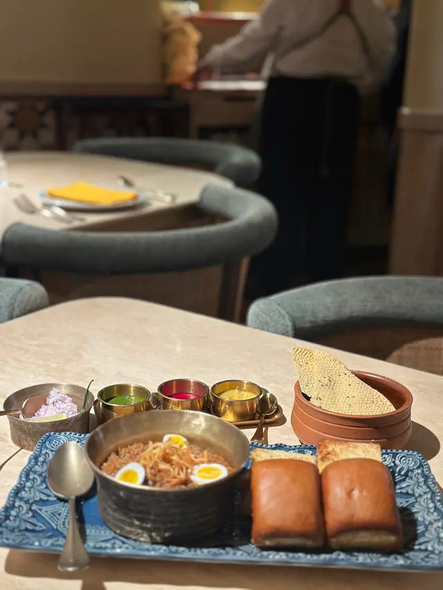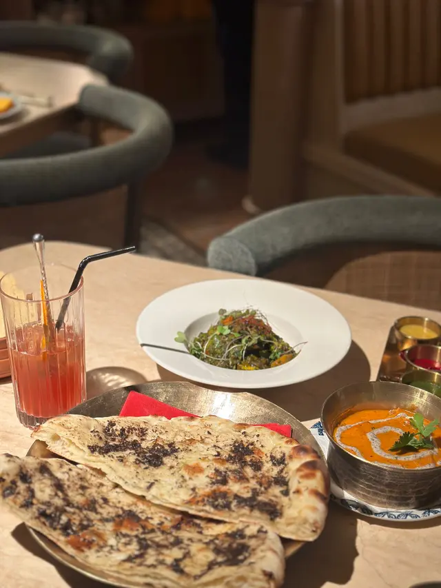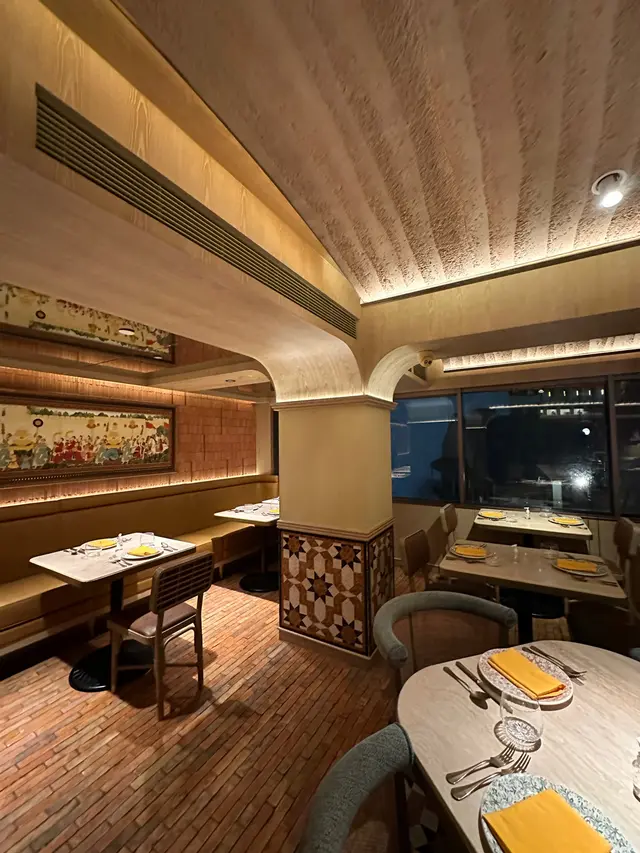 餐廳用上啡金色作主色 樓頂用上拱形設計 周圍放上印度宮庭主題嘅畫作 而地下都用上富有民族特色嘅磚砌成 配合現代元素及設計 成間餐廳充滿氣派及異鄉氛圍感! 🤩