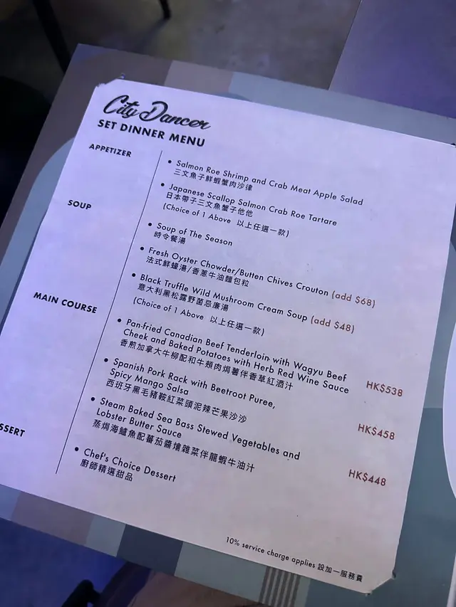 佢夜晚嘢食有好多選擇,有set dinner同a la carte,仲有好多自家調製嘅Cocktail。