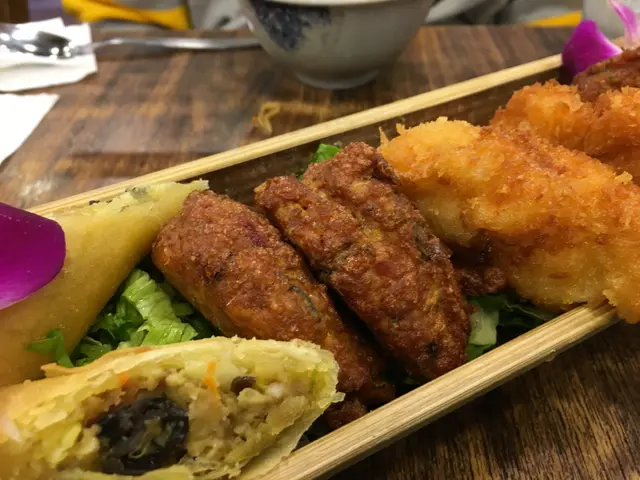 小食拼盤中的炸魚餅加了大量泰式調味料,非常惹味。炸蝦餅又大件又彈牙,絕對令人吃得停不下來。雞翼則是我喜歡的炸得比較乾身,一個人已經可以吃掉三隻🤣