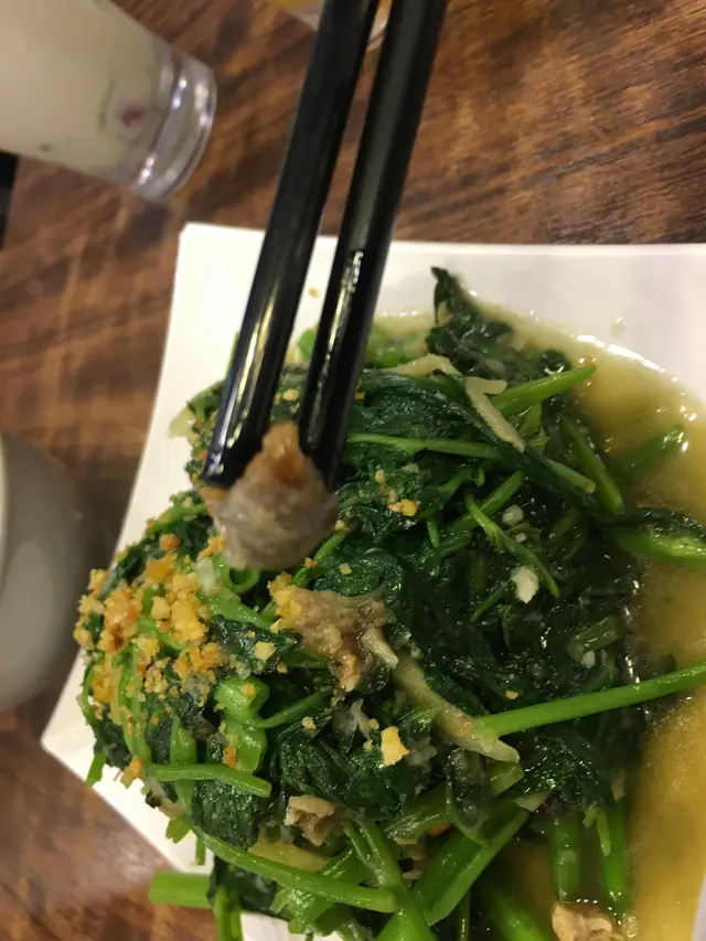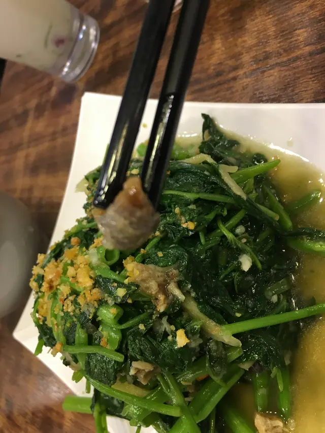 我們更點了平常少見的泰式咸魚炒通菜,與馬拉盞炒通菜相比,咸香道更高。