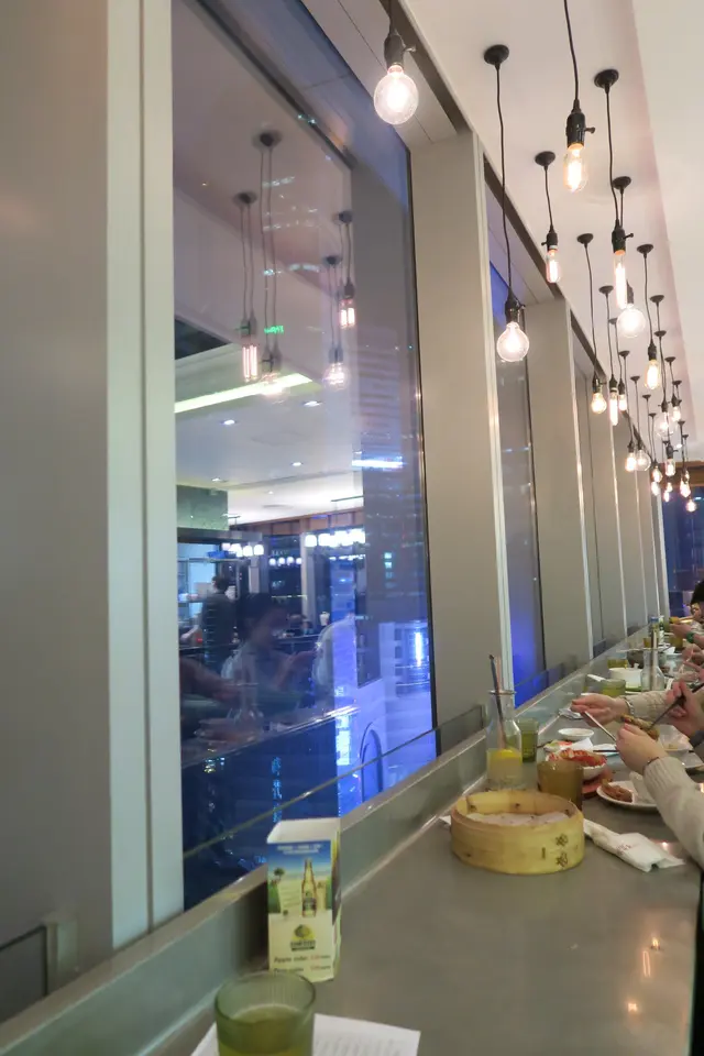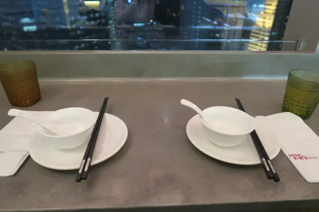 而我們幸運地被安排到供二人享用的窗前位子,二人一張小沙發,在窗旁俯瞰銅鑼灣的夜景,很有自成一角的感覺,也同時感覺像到了西式的餐廳。值得一讚的是桌下有個位子用來擺放袋子,令食客感覺到有更多空間。
