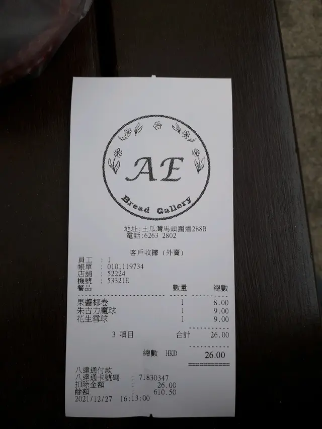 結果我在「麵包館」購買了三個「麵包」,包括看名稱感覺好像打入甜味「花生醬」作為調味料的「麵包」食品「花生雪球」、看名稱好像加入了甜味「果醬」的「果醬椰卷」,還有加入甜味「朱古力醬」的麵包「朱古力魔球」。