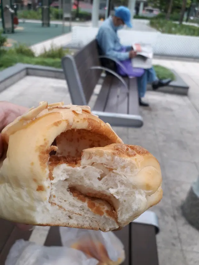「麵包館」實際上給我的最大印象,是所有「麵包」都屬於「實而不華」,甜味配料直接鋪在「麵包」表面上,反而沒有形成大型甜味醬料收藏在「麵包」裡面,需要食客享用「麵包」時,才能感受到「麵包」的甜味和香脆口感。