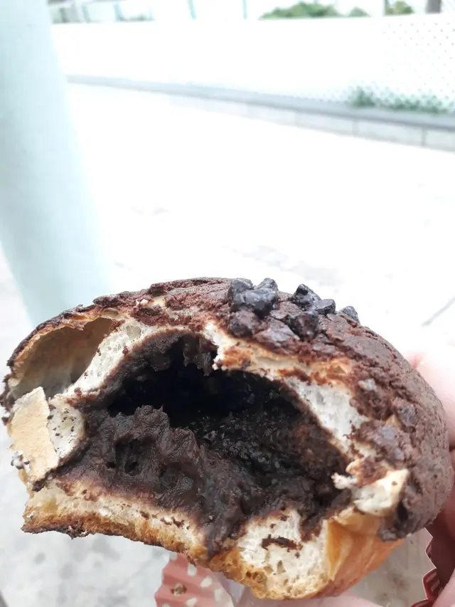 「麵包館」三個「麵包」裡面,以「朱古力魔球」麵包裡面的甜味深啡顏色「朱古力醬」最為明顯,唯一美中不足只是「朱古力醬」已經完全冷卻和變乾,營造不到任何「朱古力醬」流心視覺效果出來而已。