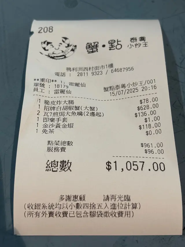 ✔️餐廳設加一服務費