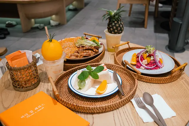 飲品方面除了提供多款特色咖啡,亦有不少打卡特飲。其中揀來兩款餐廳大熱! 杯上放着大大個金菠蘿和柑橘,造型可愛又吸引。