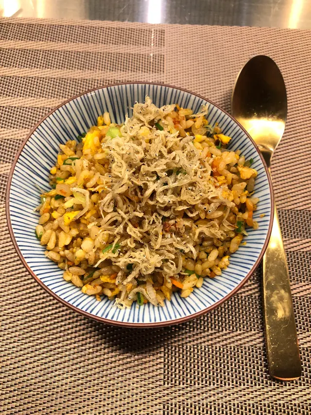 魚干仔教蟹羔雞蛋蔥及甘荀面豉炒的飯脆口再下一成。