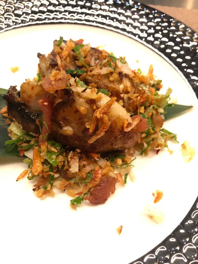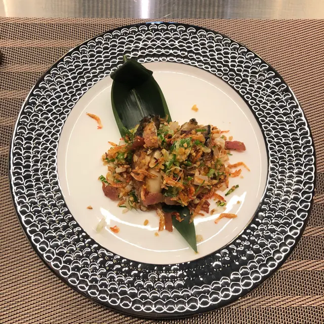 熟後的生蠔充滿肉汁,配料含煙肉脆脆蔥粒櫻花蝦乾蒜等炒得香