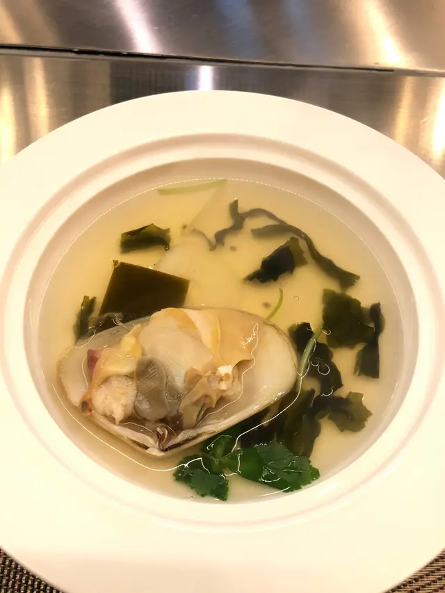餐廳用的碟幾靚,盛住的日本珍珠蠔蠔肉肥美,味道激濃