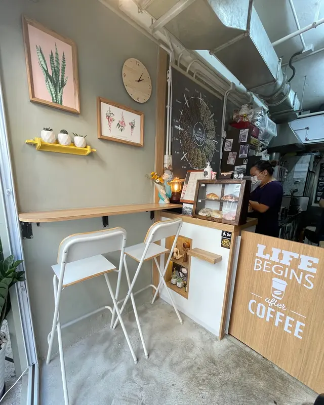 咖啡店一眼睇晒,兩邊各有兩個座位,環境都唔算太逼夾,坐低偷閑嘆杯啡都舒服既。