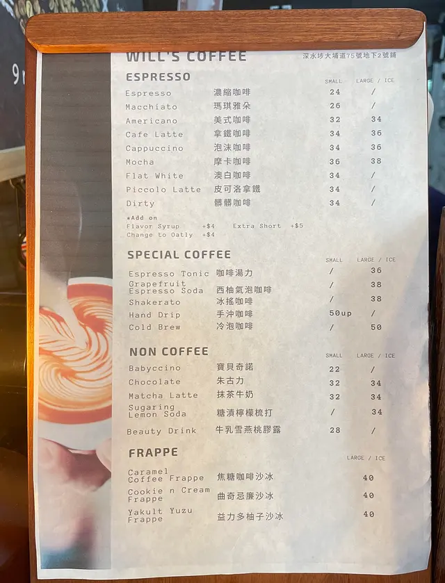 Will's Coffee 位於深水埗大埔道,位置近 Aeon $12 店對面,再行前少少就會見到美荷樓和嘉頓。