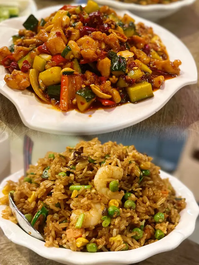 宮保雞丁有麻辣香味,有點微酸,蠻下飯的👍🏻醬汁稍微稠了一點🙂如果可以沒那麼稠的話,應該會更清爽好吃。炒飯味道很香很濃🔥米飯粒粒分明,料很多♥️炒得清爽不油膩👍🏻如果沒有青豆更好了🤣