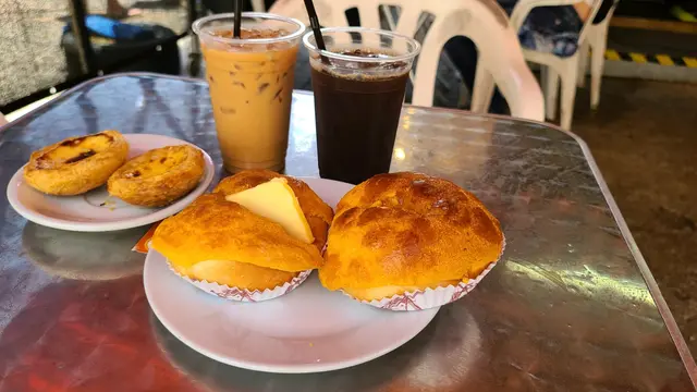 店舖有少少露天座位,但與排買菠蘿包及葡撻是分開兩條龍的,所以如果你見人龍少,分分鐘排錯隊,就算你坐低咗,你都要行返出去排隊買菠蘿包,除非你諗住食其他或者買嘢飲啦!