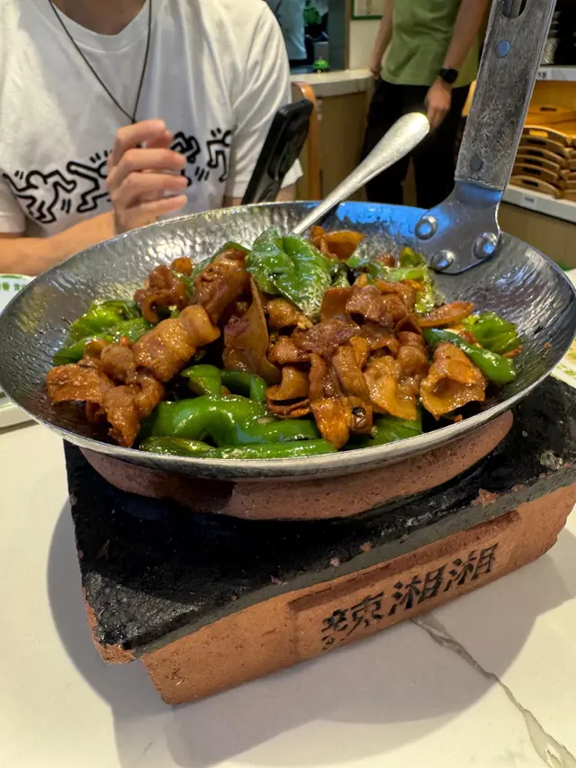 真係有鑊氣, 用爐仔熱住上; 雖然有很多辣椒, 但其實不辣, 好有尖椒青椒嘅香味, 仲有一啲雲耳。用豆豉, 薑和醬油炒起嚟好惹味, 肉片瘦得來這麼嫩滑, 好淋, 攞嚟撈白飯真係好正!