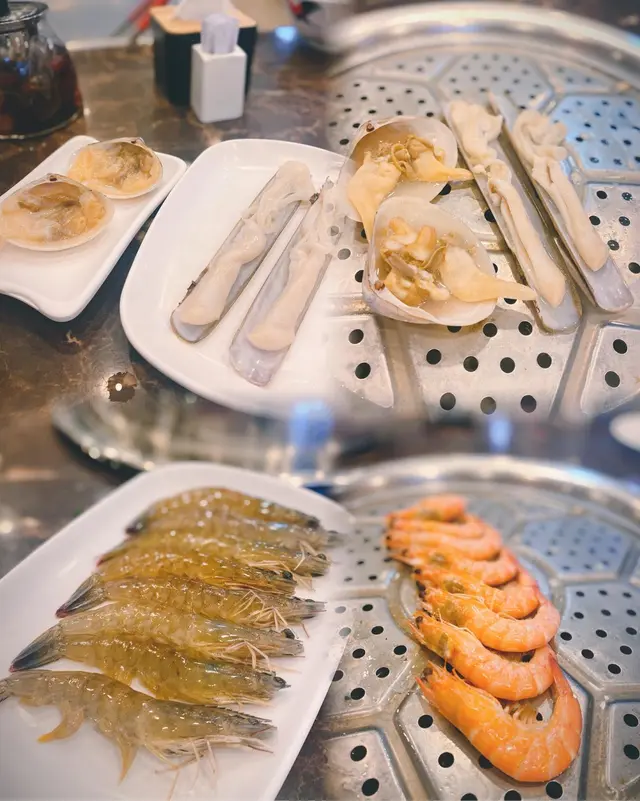 食之前老闆會準備好一壺熱茶同餐前小食比我地🫖特別一提熱茶叫滋潤八寶茶 濃醇香甜 十分足料🫘老闆同店員服務亦係一流 每次蒸完都會慢慢介紹食材同親自上碟比我地 又不斷幫我地加茶 而我地既套餐就包括左以下食物😋