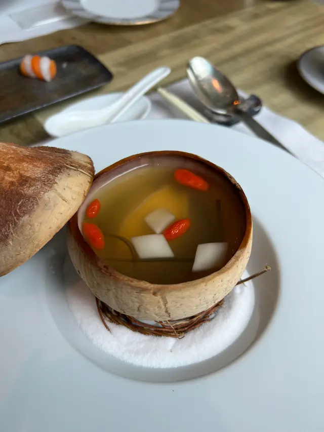 {原个椰皇海带杞子炖鲍鱼}-🥥先蒸椰皇逼出椰子油,再加入鲜椰汁配上汤料一起炖煮,很清甜,汤里的鲍鱼个头很大吃起来也很Q弹