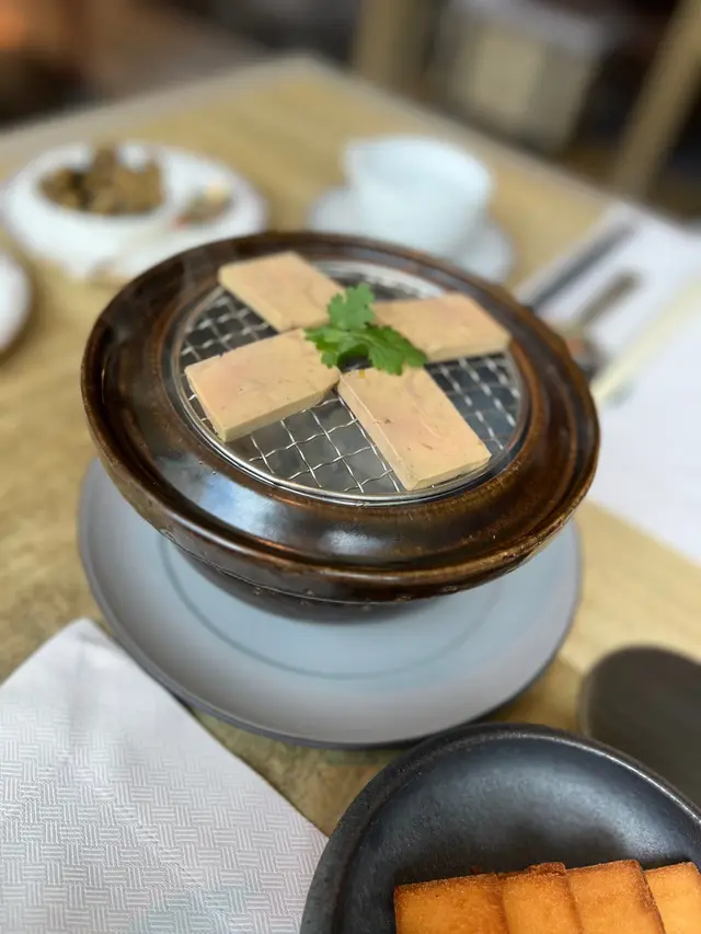 {烟燻卤水鸭肝配脆馒头}这是餐厅的招牌菜,卤水鸭肝真的充满了烟熏的味道,服务员打开容器,烟雾会散开。将鸭肝放在脆馒头片上一起吃,又脆又香,鸭肝很丝滑。🤤
