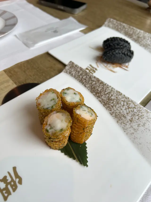 {海苔龙虾春卷}-🦞这道菜是点心里的特色,春卷外皮酥脆,内陷是满满的龙虾肉,搭配起来又脆又Q弹的口感。