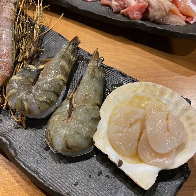 海鮮有大虎蝦,原隻魷魚🦑同埋厚切元貝,元貝好鮮甜,虎蝦蝦頭重有蝦膏 好香口🤤佢全部海鮮都好新鮮,我諗可能都係急凍貨,但係食落口一啲都唔會霉 全部都實淨彈牙!