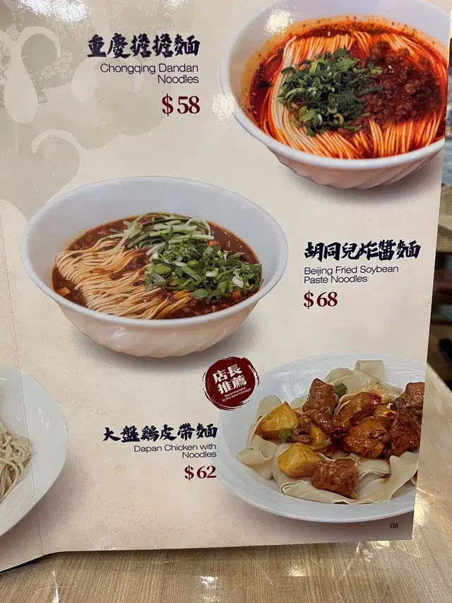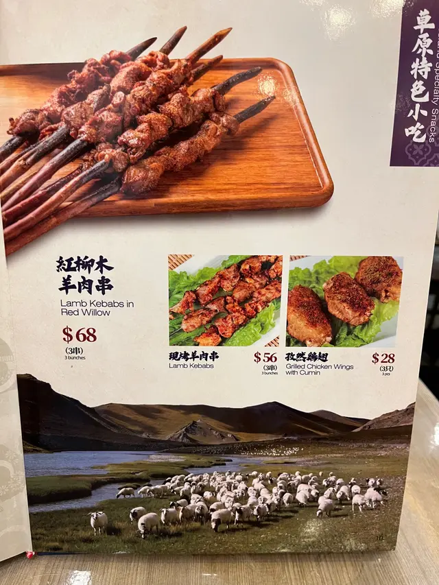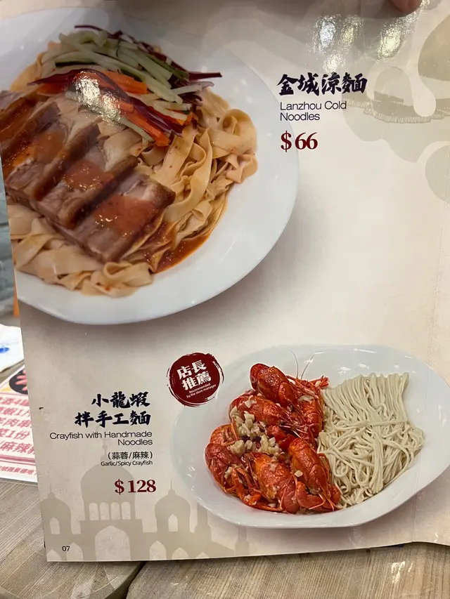 就決定入去試下,店內環境光鮮、衛生,坐得舒適,睇睇個menu先,都幾多選擇,除左麵,仲有羊肉串、水餃同埋各式小食,甘主打我當然係點