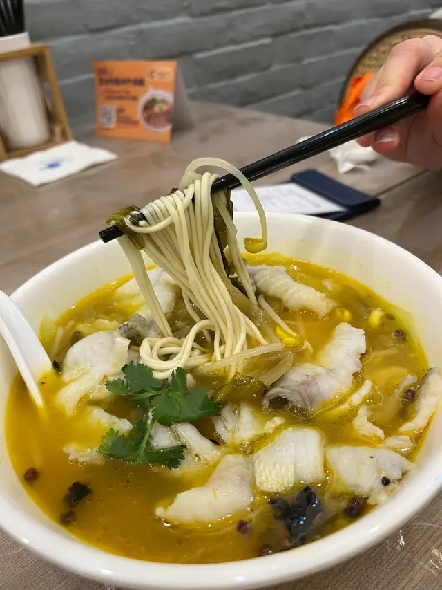 龍鬚麵比蘭州拉麵圓身一點,同埋更有彈牙口感,酸菜魚薄切嫩滑,完全冇骨,仲有埋寛粉入哂酸菜湯底既味道,必食之選!