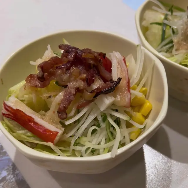 第一道前菜是培根蟹柳沙拉