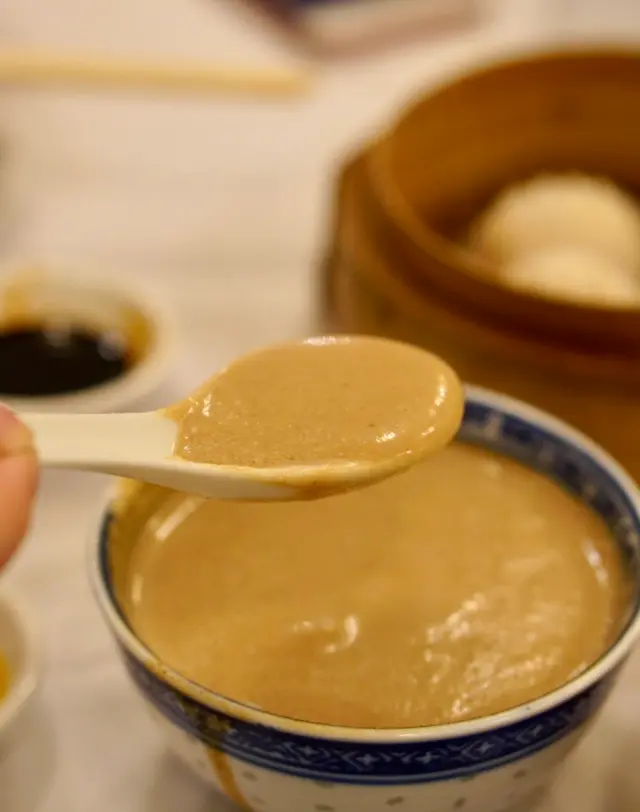 同样真材实料、温暖滋润,没有完全磨化的桃仁小颗粒会有微微沙喉咙的质感,坚果香气虽浓醇,但糖水质地比较稀,和家全七福的核桃露不可相提并论。