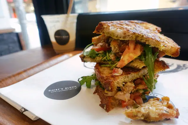 sourdough烤得好香脆, 雞肉一舊舊, 略乾左d🥪. pesto 香味唔算濃, 反而配上左切粒蕃茄洋蔥, 類似salsa 都幾fresh, 好大份都唔錯