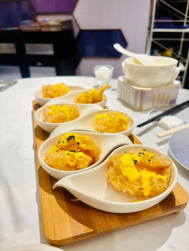 每份五隻蝦球,即點即炸,上桌時熱氣騰騰。外殼酥脆,蝦肉飽滿緊實,佐以微酸芒果醬汁,巧妙中和油膩感。