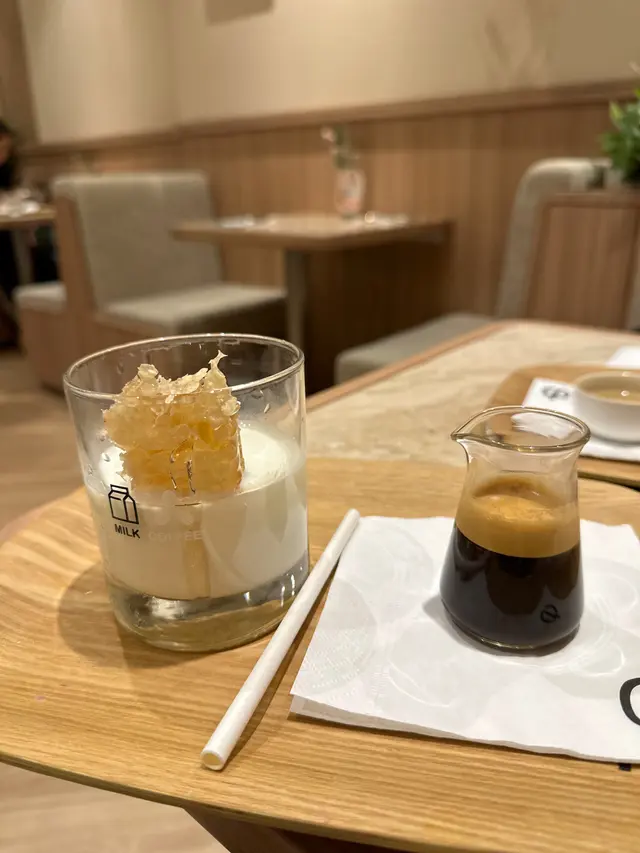 評價:有驚喜,第一次見到。真係有一舊實實在在嘅蜂巢喺個鮮奶裏面,再自己將咖啡加入去整成Dirty👍🏻打卡一流