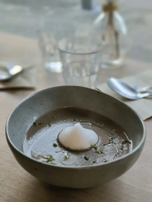 先黎栗子磨菇湯,見到栗子兩個字,我對眼已經發光。可惜冇伴麵包,有啲失望!