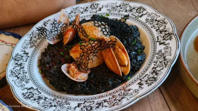 至於risotto 的墨汁飯,軟硬適中,煙煙靭靭,趙起來有口感,花甲好鮮甜!比較起來,厚切豬扒就一般般,肉好厚但仍舊juicy, 只係唔夠兩隻意粉咁搶鏡!