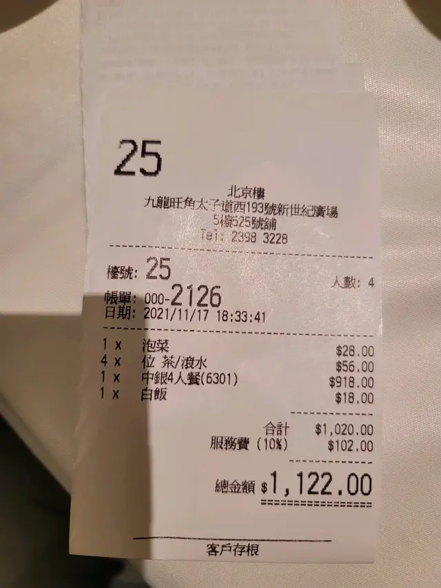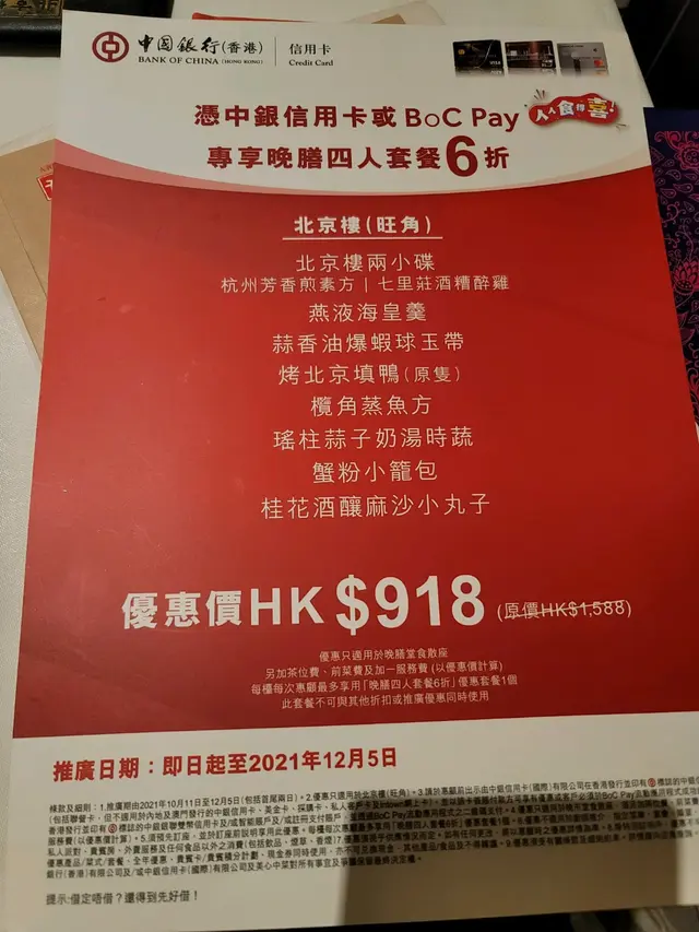 用了200蚊 coupon,中銀咭埋單,922蚊。 去北京樓主要要食北京填鴨,其他菜式不過不失。
