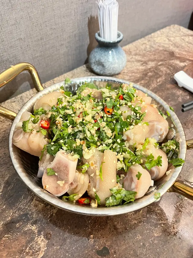 沙薑豬手皮好爽彈。簡簡單單用蒜蓉、蔥、辣椒同豉油做調味,估唔到簡簡單單又幾好味。