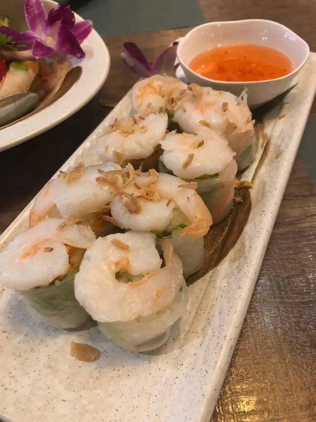 每件米紙卷都有熟蝦,米紙卷內的香草配上米粉,很清新!而且點上醋汁,更加惹味😋