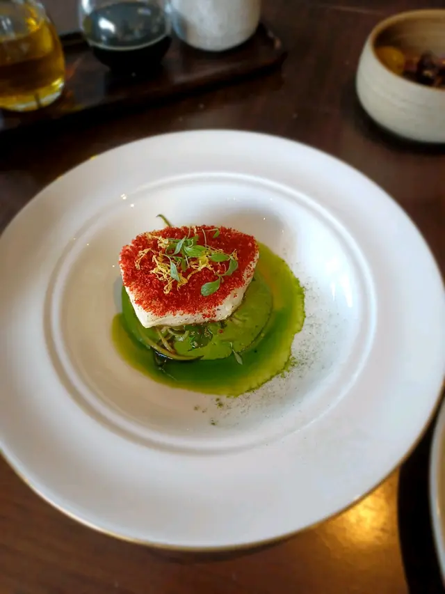 Presentation 一流,香味一流,魚肉外脆內軟,配青瓜,西洋菜油,大帶提高了與嘅鮮味,必食