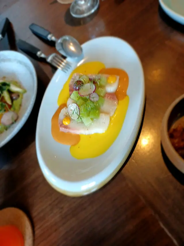 油甘魚刺身配上citrus, 海膽嘅汁醬,再加上脆口既萵筍及radish, 成個餸菜嘅味道變得好立體,非常好味開胃