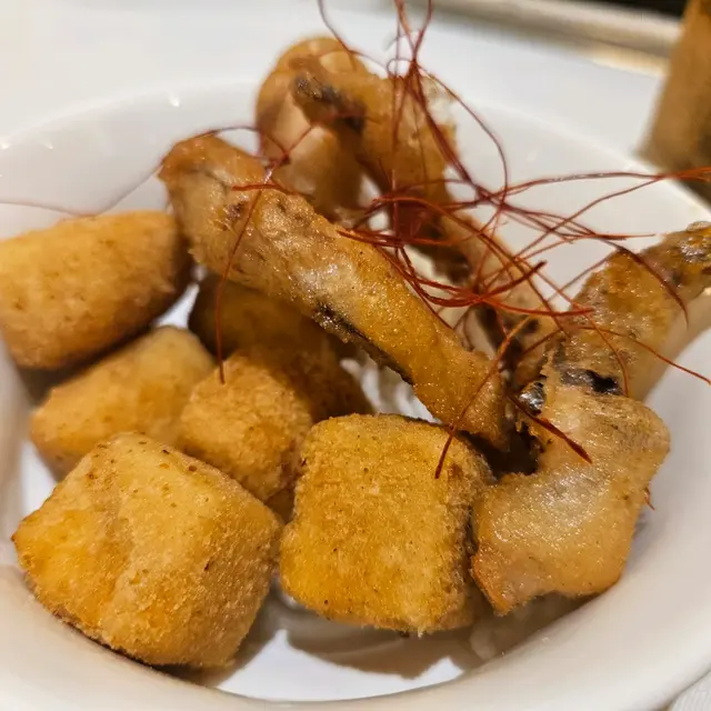 用點心紙點餐,選擇眾多,應有盡有。點餐後10分鐘內,炸點即送上,腐皮卷餡多皮脆,魷魚鬚香口美味,炸鮮奶外脆內軟,全都好吃!蝦春卷一般,可不吃。
