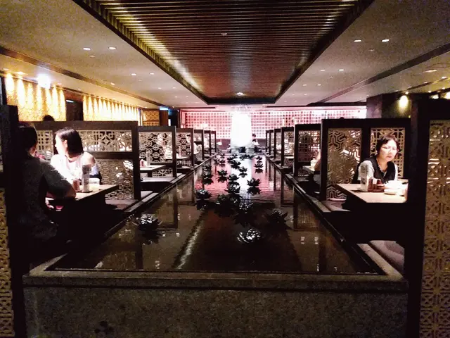 這店6樓全層面積極大, 一出lift已被這裡的環境深深吸引住, 中國傳統古代設計,在餐廳正中間還有一條長方形的 水池, 池中放了數十盞蓮花形的燈, 在昏暗的燈光下, 極具氣氛。我們好彩被安排坐在水池旁邊的卡位, 座位寬敞闊落之餘, 就好像在湖邊悠閒舒適地進行晚餐, 此情此境,正!
