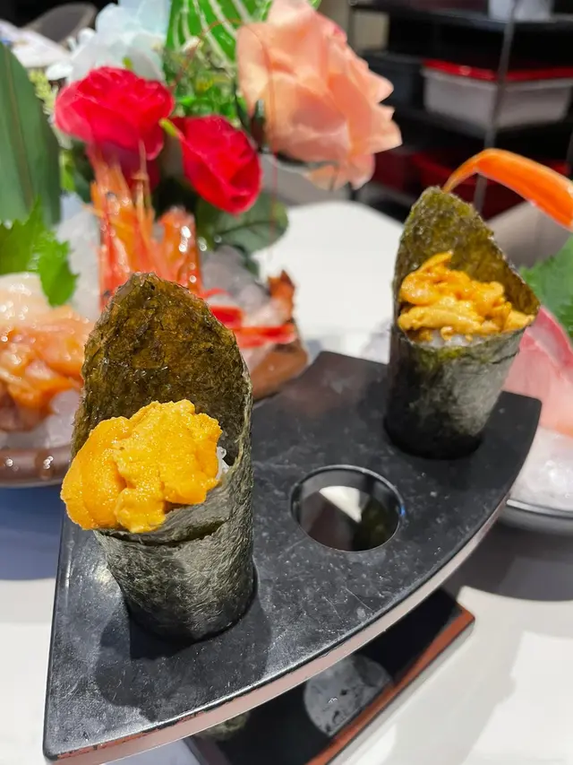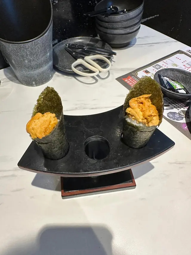 海膽手卷海膽份量絕不吝嗇,一口咬落去非常滿足,鮮甜味道充斥整個口腔