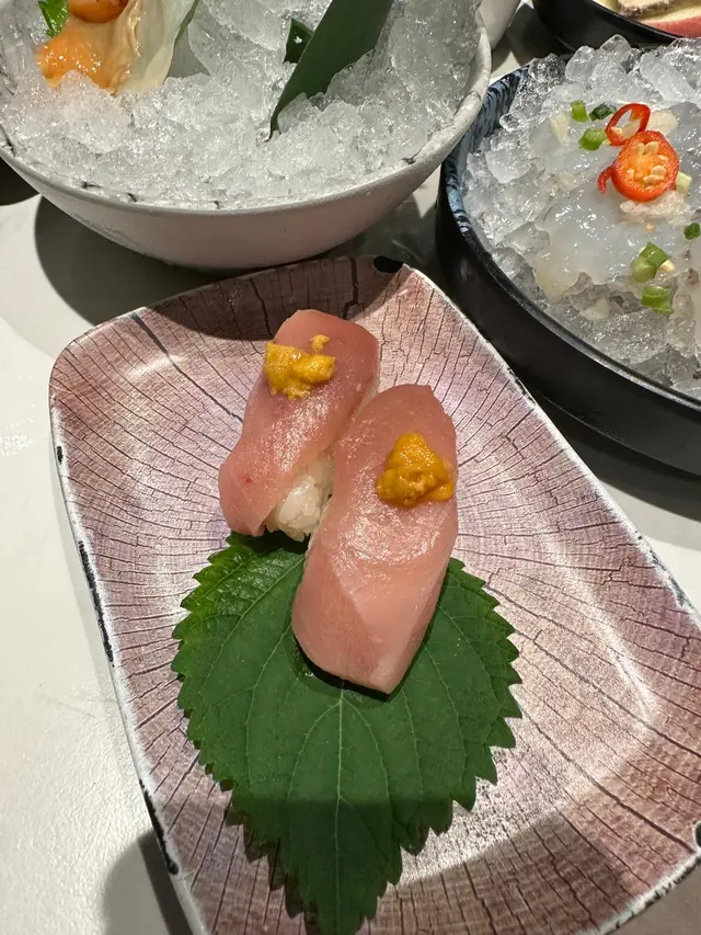 首先,讓我們來談談自助區。當你走進這個區域時,你會立刻被眼前的美食驚艷到。他們提供了各種飲品,從自家泡製的茶類到果汁汽水啤酒,應有盡有。沙拉區的選擇也相當多樣,新鮮的生菜、蔬菜和多種醬汁,可以隨心所欲地搭配。但最讓人驚喜的是海鮮區,這裡不僅有新鮮的蝦和青口,還有令人難以置信的海膽手卷和深海皇帝蟹肉手卷海膽手卷和深海皇帝蟹肉手卷由於太受歡迎,所以要排隊拎,每次每人只可以拎兩件,確保每位客人都可以享用到